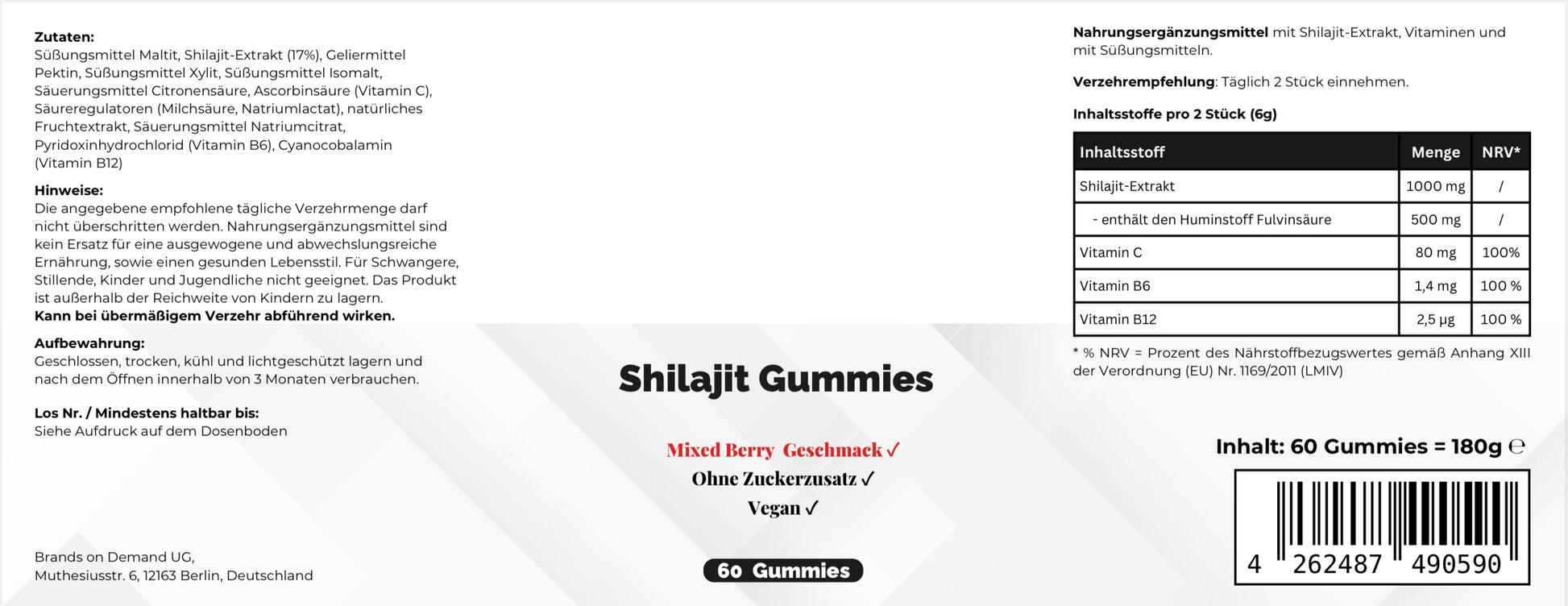 Premium Shilajit Gummies 1000 + Vitamin C,B6, B12 - 60 Stk